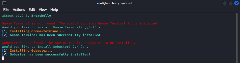 If the tools used in the script (gnome-terminal and gobuster) are not already installed on the Linux operating system, the script automatically detects this and first installs these tools to the operating system with user permission.