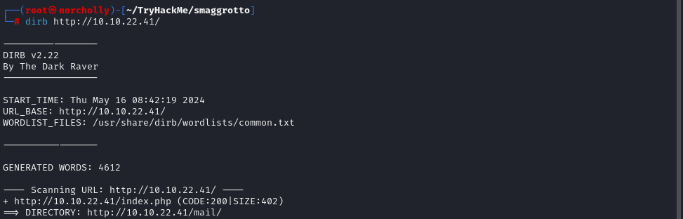 We didn’t see any unexpected open ports. Let’s perform a directory scan on the web server: