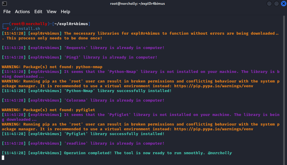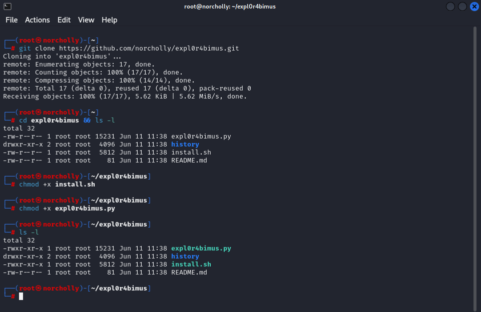 Let’s download the tool to our Linux using the command git clone https://github.com/norcholly/expl0r4bimus.git, and then grant executable permissions to all users using this command: chmod +x install.sh && chmod +x expl0r4bimus.py