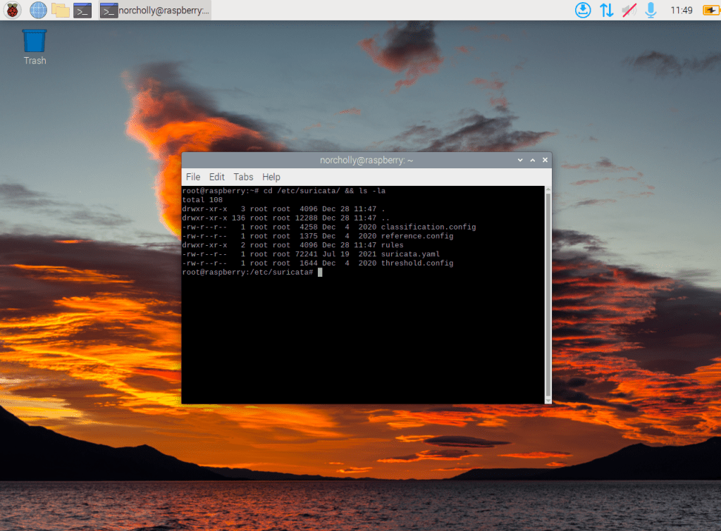 cd /etc/suricata/ && ls -la komutu ile HIDS/HIPS aracımız suricata‘nın bulunduğu dizinin içeriğini görüntülüyoruz.