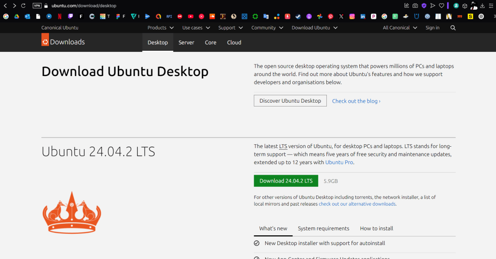 Öncelikle https://ubuntu.com/download/desktop adresinden Ubuntu Desktop’ın .iso uzantılı en son sürümünü indirelim.
